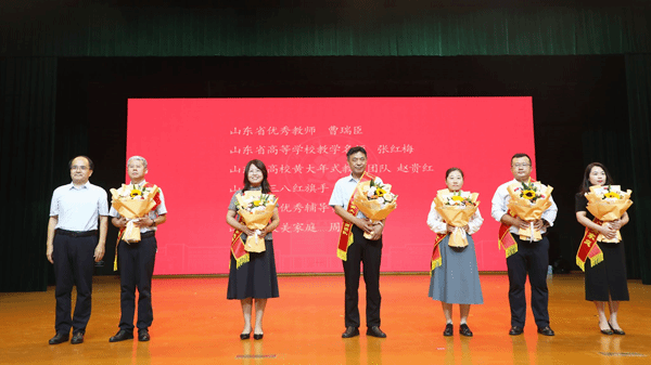山东省优秀教师、人文与新闻传播学院教授曹瑞臣,新入职教师代表范瑞昌,从教三十年教职工代表、数学与统计学院副教授回钰分别发言,分享了从教故事与经验心得, 表达了“躬耕教坛 强国有我”的信心决心。新入职的教师们进行了庄严的集体宣誓仪式。