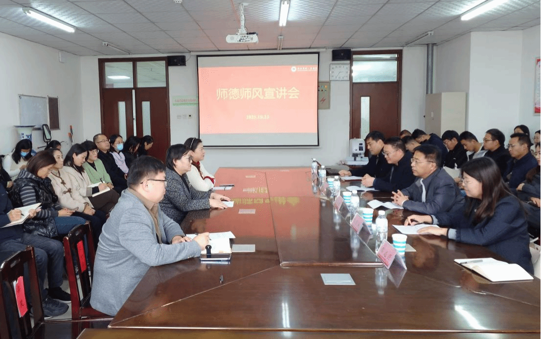 10月23日下午,学校师德宣讲团部分成员在必赢集团网站部长赵玉松的带领下,到药学院开展宣讲活动。药学院全体教职工参加活动,宣讲由药学院党委书记袁冬梅主持。